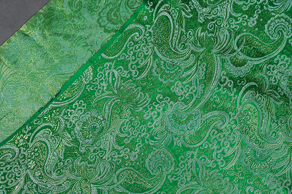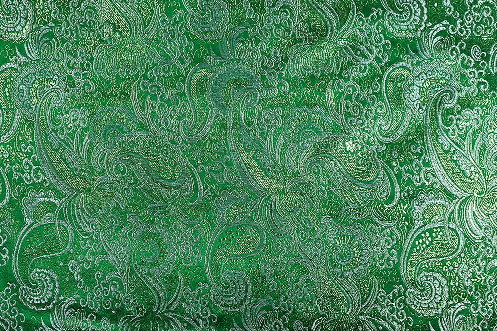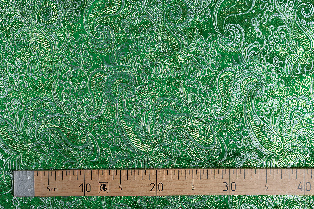 Парча-жаккард огурцы Золото на зеленом 009156.6