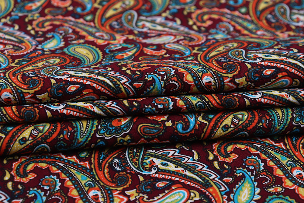 Поплин набивной 145 гр/м.кв. Огурцы на бордовом 011368.16
