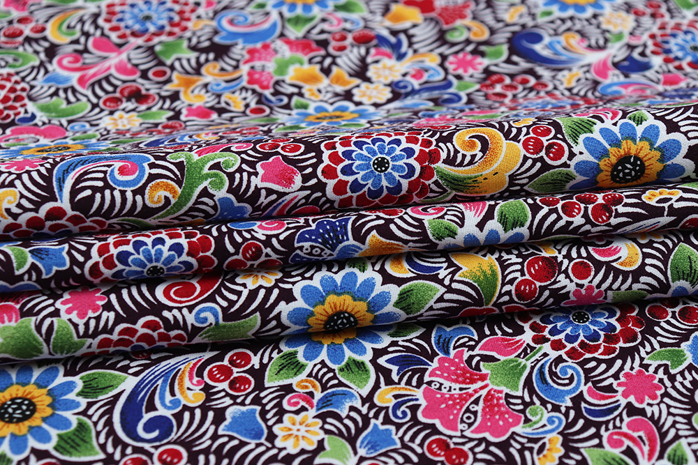 Поплин набивной 145 гр/м.кв. Цветы на бордовом 011368.18