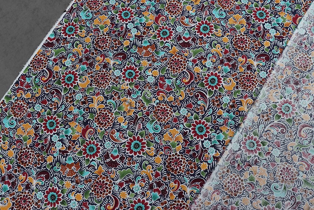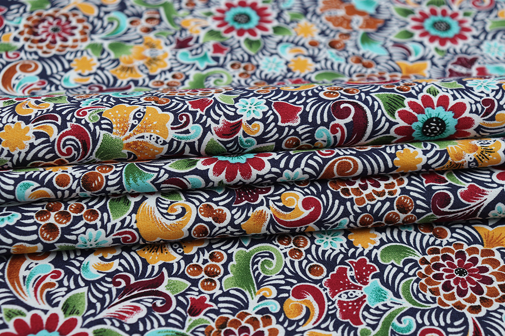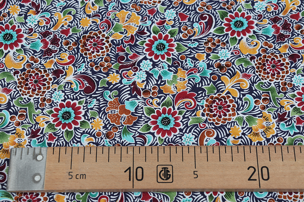 Поплин набивной 145 гр/м.кв. Цветы на т.синем 011368.17