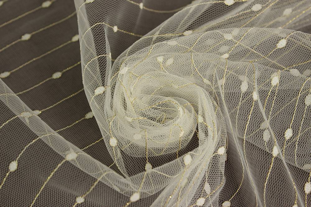 Сетка вышивка металлик 15309 Молочный/золото 011925.2