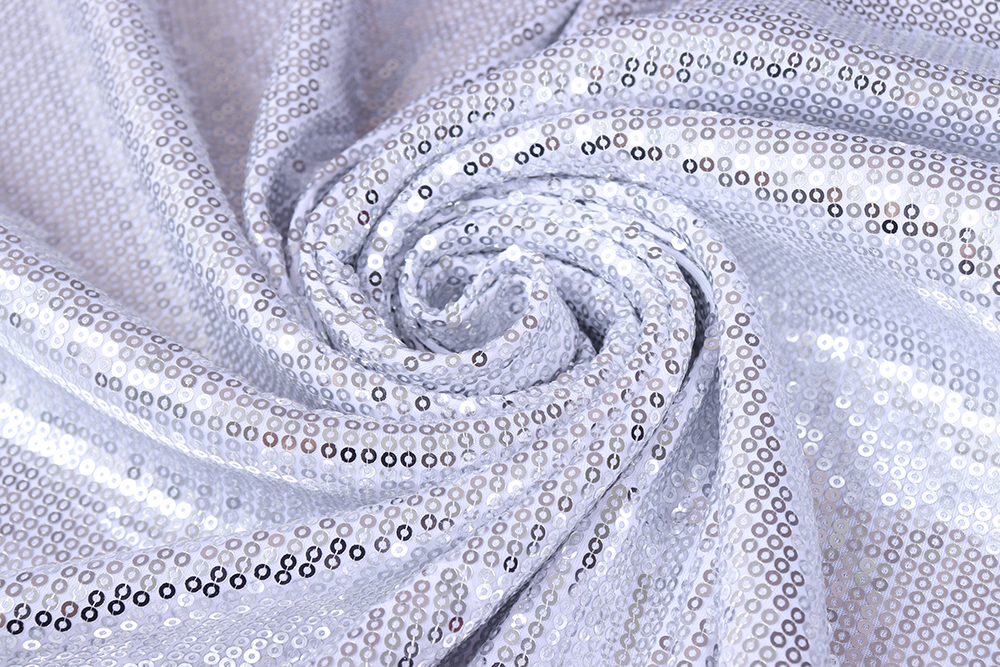 Пайетки на трикотаже Серебро на белом 011813.01