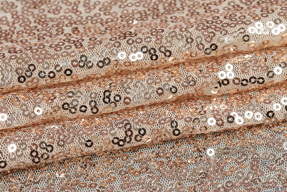 Пайетки на сетке Т.золото на св.бежевом 011255.16