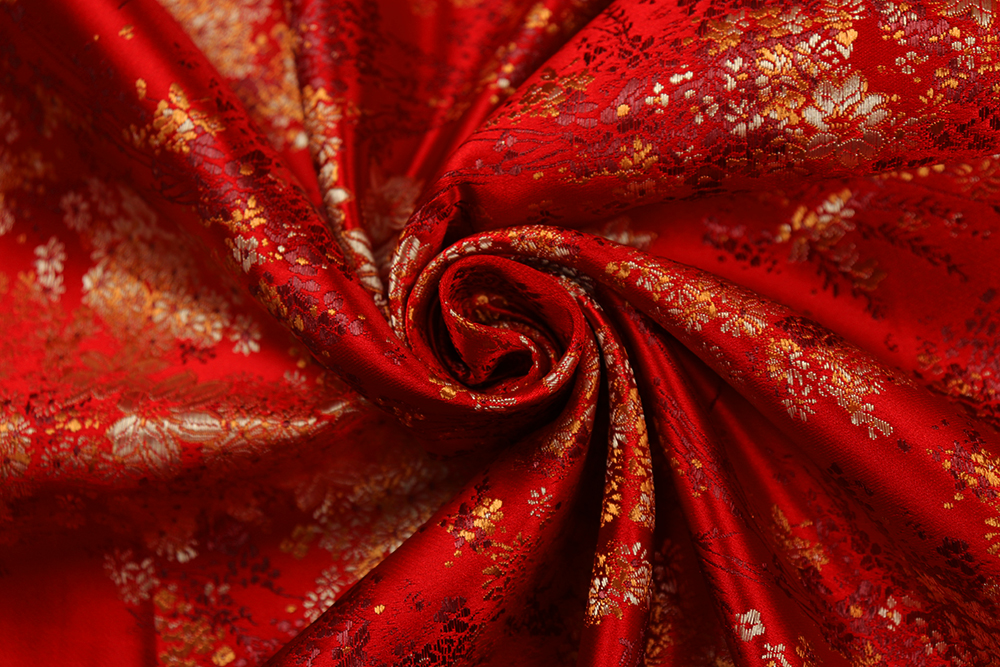 Шелк-жаккард цветы диагональ Красный 012250.2