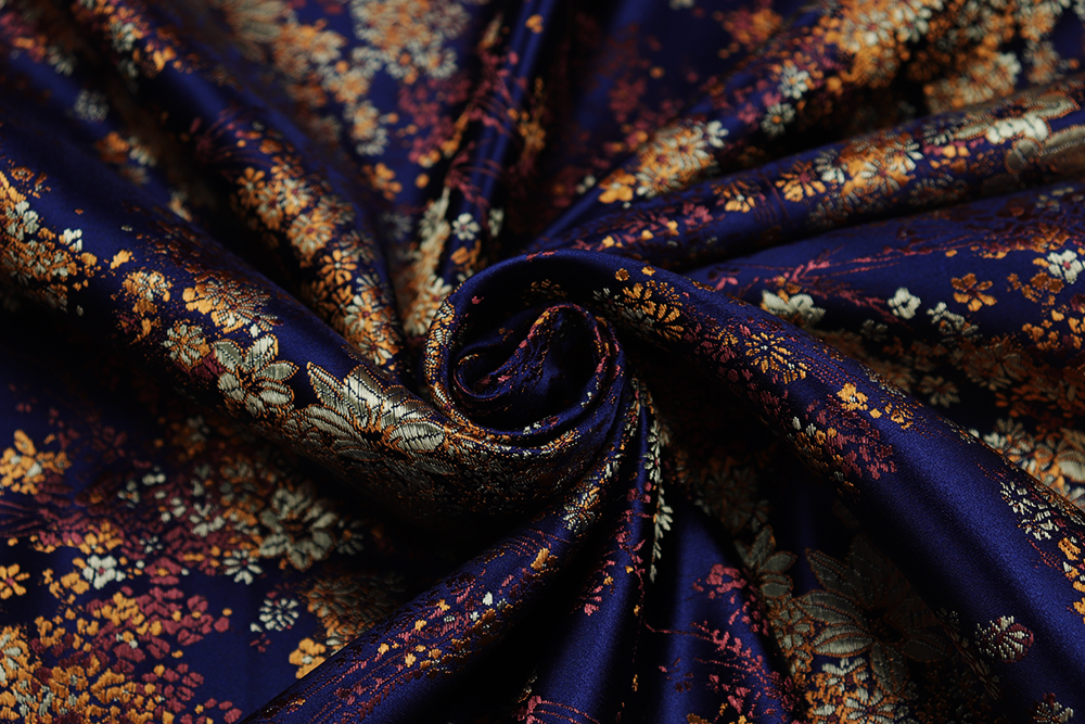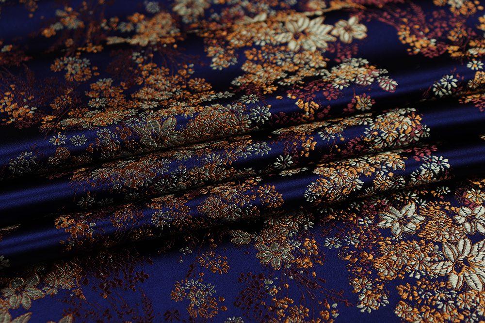 Шелк-жаккард цветы диагональ Т.синий 012250.4