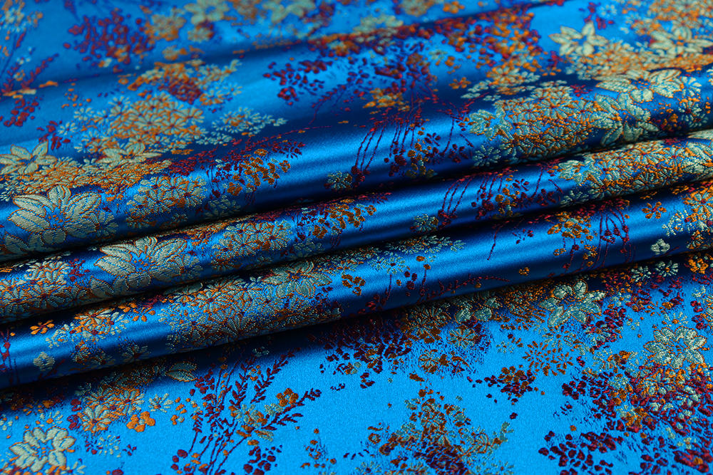 Шелк-жаккард цветы диагональ Бирюзовый 012250.7