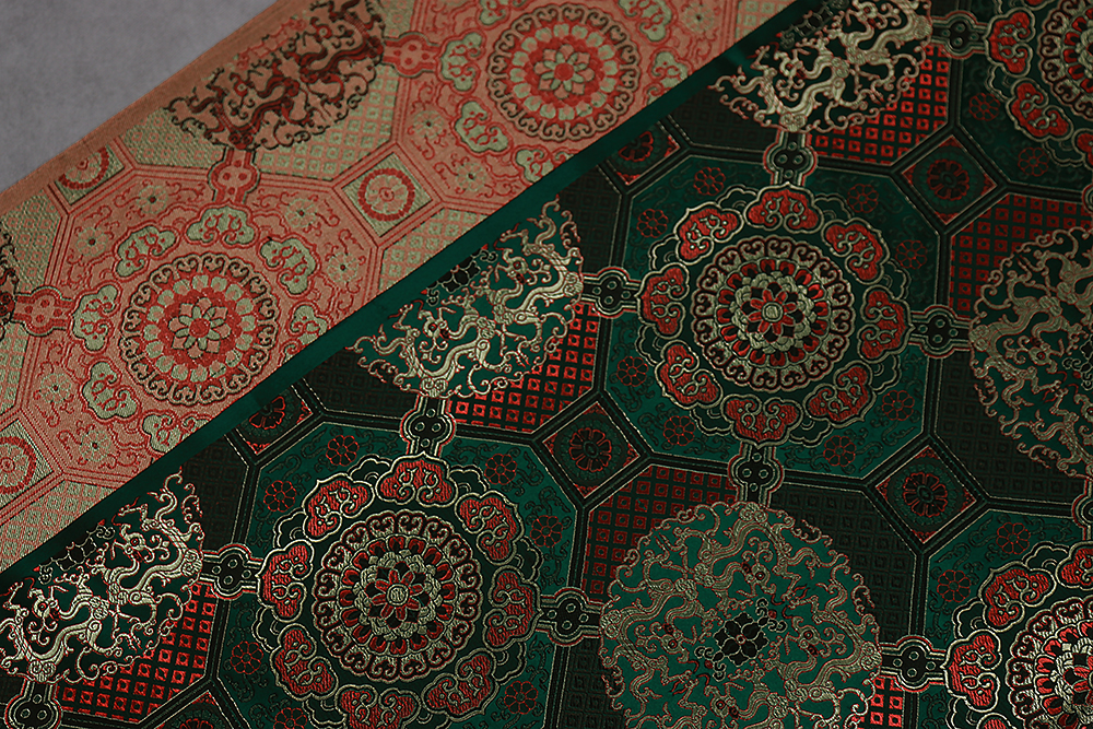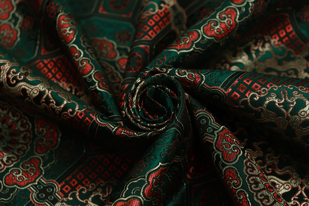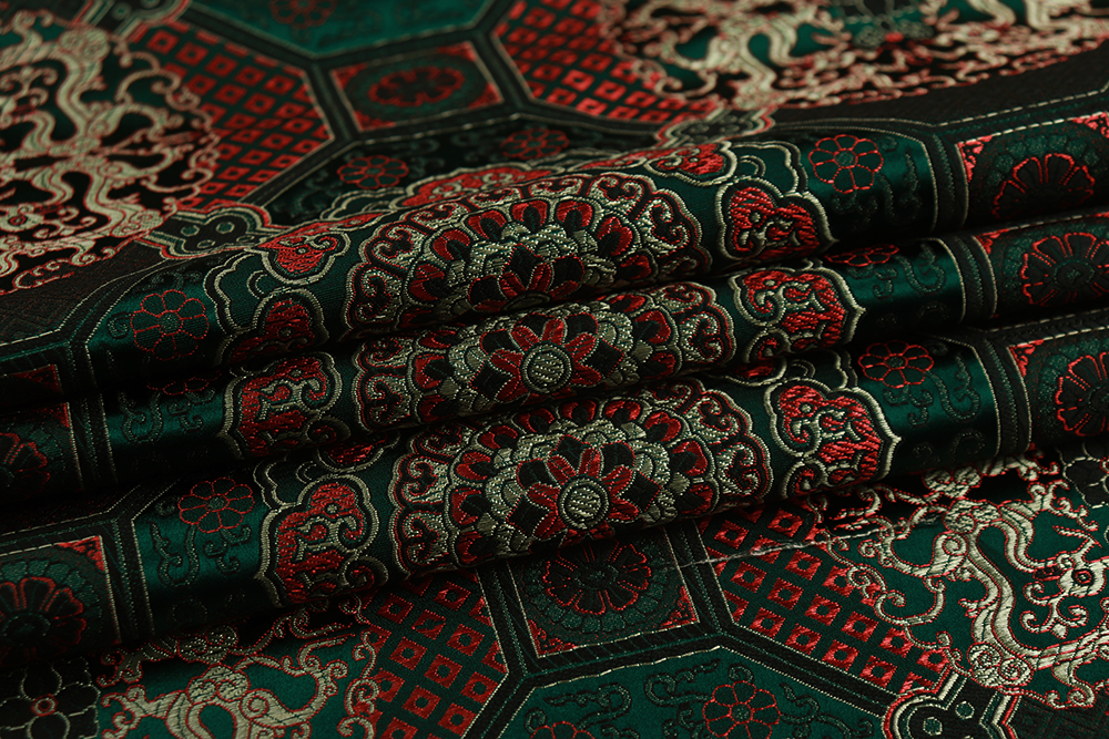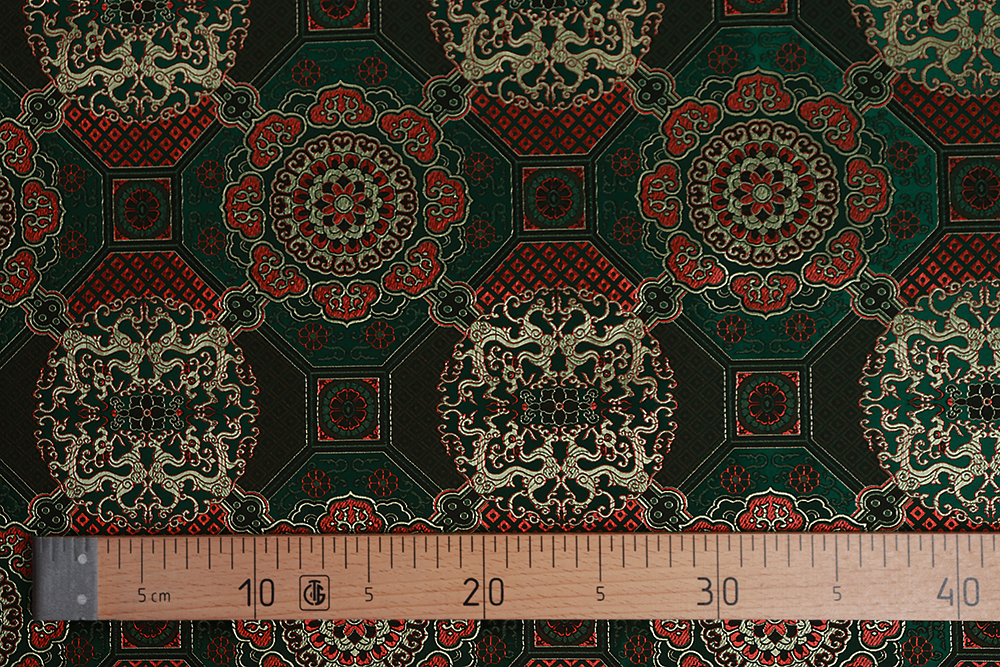 Шелк-жаккард монгольский круги в квадратах Изумруд 010799.20