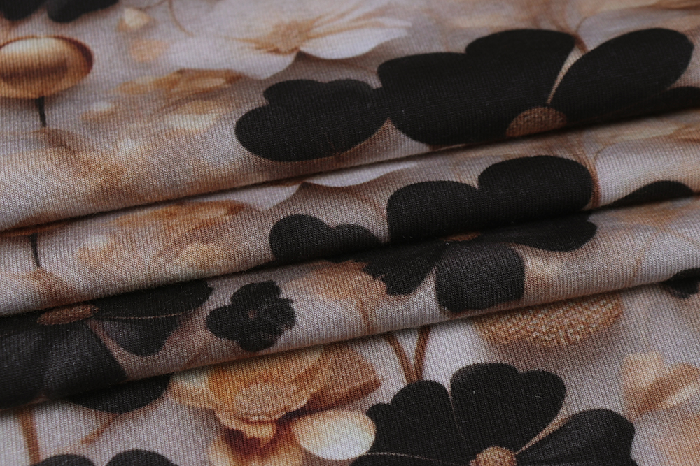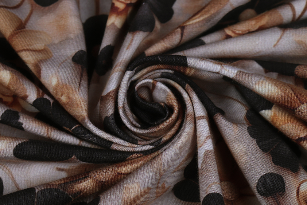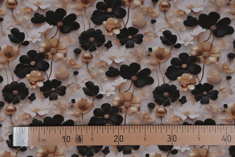 Кулирная гладь с лайкрой Цветы на бежевом 011696.370