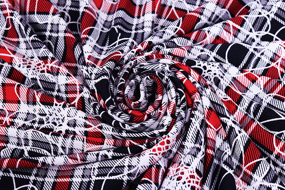 Трикотаж вискозный 2166 320гр/м.кв.Клетка Синий/красный 011126.81