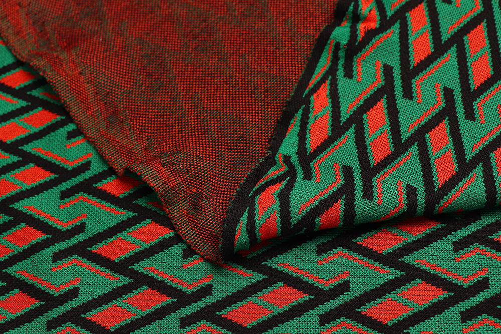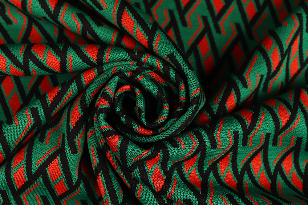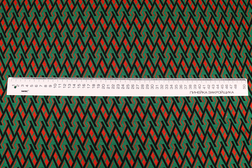 Трикотаж-жаккард ROYCE 54016 Зиг-заг Терракотовый/зеленый/черный 011086.11