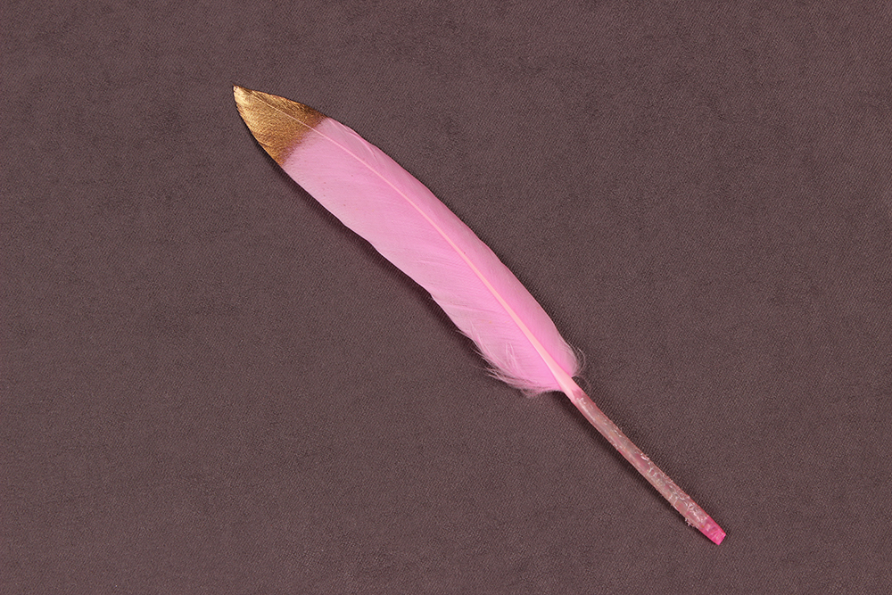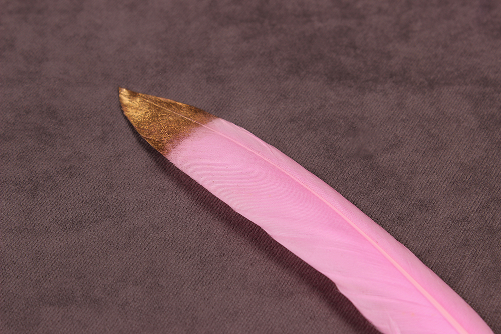 Перо куриное 13см двухцветное Розовый/Золото